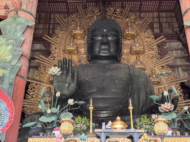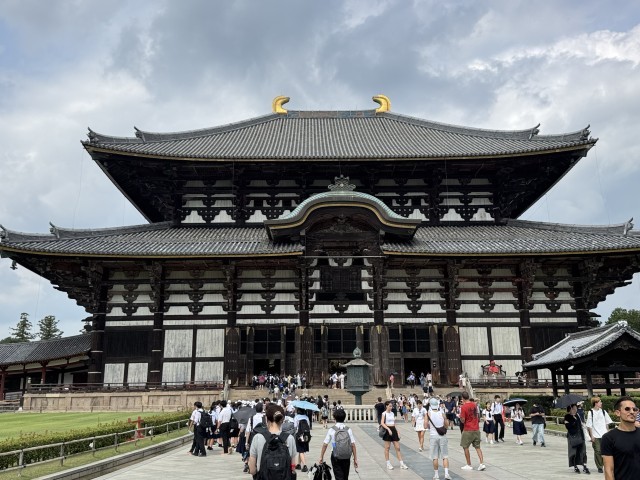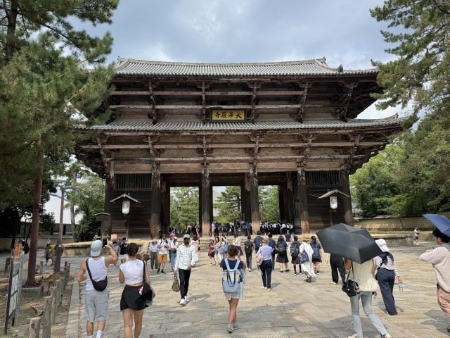 奈良に到着し、生徒たちは奈良公園を班で散策しています。