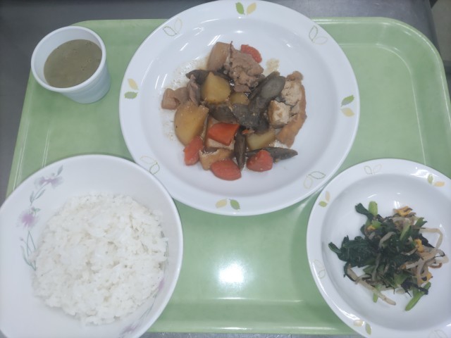 今日はリクエスト給食のアンケートで多かった抹茶ミルクゼリーです。ゼリーは、ゲル化剤を使って固めています。今日はアガーという海藻からとれるカラギーナンを主原料にしていて、やわらかく、なめらかで口当たりの良い独特の食感が特徴です。