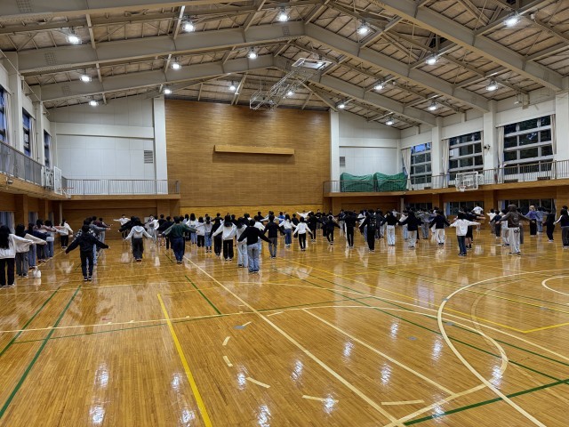 眠そうですが、頑張ってラジオ体操をしました。この後、朝食、閉園式をして、森と湖の楽園に向かいます。