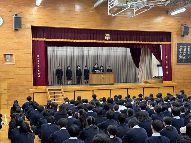 今週の月曜日には生徒会朝礼があり、各種委員会の委員長があいさつをしました。水曜日から金曜日までは期末考査でした。1時間目は学習の時間で、生徒たちは最終確認(勉強)をして、期末考査に挑みました。