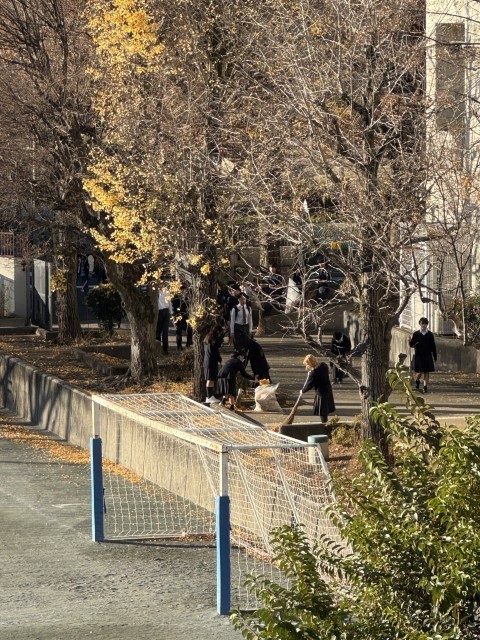 美化委員会の呼びかけで、校庭、近隣の公園の落ち葉掃きを行いました。18日まで続きます。生徒の皆さん、よろしくお願いします。