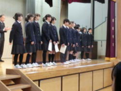 始業式では、第3学期のスタートにあたり、各学年生徒代表からの抱負や決意が述べられました。一年の締めくくりと次の年度への準備期間と重なる3学期。一日一日の取組を大切にし、さらなる成長を期待します。また、指揮者、伴奏者が2年生に引き継がれて初めての校歌を全員で歌いました。始業式後は、社会を明るくする運動作文コンクール 東京都優秀賞と、バスケットボール部 多摩川地区研修大会の表彰を行いました。