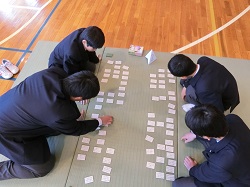 1年生は、格技室で百人一首大会を行いました。