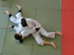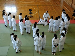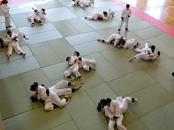 固め技の確認をし、抑え込んだ状態から相手に崩されないように、抑え込みの条件に気を配りながら練習を行います。