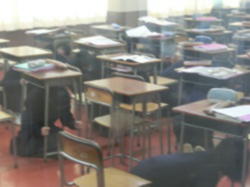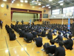 今日の訓練は、年間に計画した避難訓練と世田谷区で3月9日に行われる予定の「世田谷区いっせい防災訓練(シェイクアウト訓練)」を兼ねました。地震を想定した訓練ですが、雨天のため体育館を避難場所としました。避難後、通常の目的に併せて、東日本大震災や熊本地震等の記憶の風化を防ぐなどの目的もあることが伝えられました。