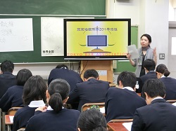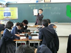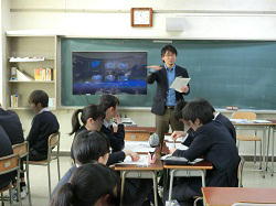 7日、3年社会の授業で、裁判員を体験する授業を行いました。講師として、東京弁護士会の3名の弁護士の方をお招きしました。裁判の事案について映像で鑑賞し、裁判の2つの争点について話し合い、結論を出しました。刑事裁判のルールや裁判で使われる用語についての説明、起訴状、鑑定資料、結論を導き出すまでの順序など、裁判に関わる様々な事柄についての説明を受けながら、体験が進みました。