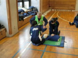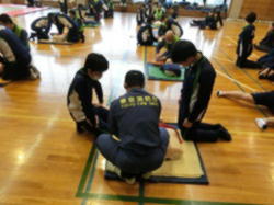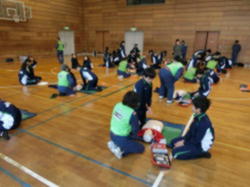 玉川消防署、玉川消防団のご協力を得て、応急手当の方法について学びました。応急手当の意義、心肺そ生、AEDの使用、食べ物がのどに詰まったとき、出血への対応などについて、講演や実習を通して学びました。受講後、普通救命講習修了証をいただきました。