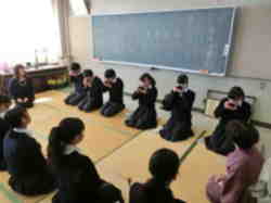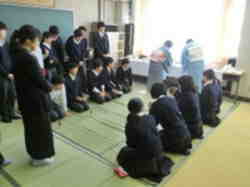 普段とは違う雰囲気のなかで、日本の文化を体験する時間が過ぎていきます。作法に沿って、一つ一つの所作に集中しながら取り組む生徒たち姿があります。臨時の茶室(会議室)は、和の雰囲気が漂います。事前の準備を含め、講師の方々には大変お世話になりました。ありがとうございました。