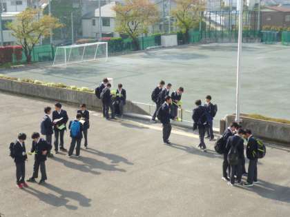 旧クラスで最後の学活をして、始業式を行います。