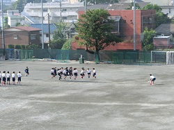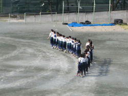 大むかで競走や大縄跳びの練習に取り組みます。生徒たちの声が校庭に響きます。