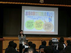 2年生は、キャリア教育の一環として9月に実施する「職場体験」に向けた準備を進めています。18日、キャリアコンサルタントを講師としてお招きして「マナー講座」を実施しました。働く意義、ビジネスマナー、事前訪問の際の留意点、話し方や礼の仕方などを講師の方から丁寧に教えていただきました。