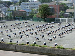 各学年集中力を増して練習にのぞんでいます。特に、3年生のラジオ体操は一体感のある演技でした。
