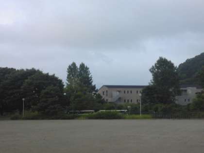 移動教室第2日目の朝を迎えました。現在の天気は薄曇。宿舎から一瞬富士山の頂をのぞむことができました。