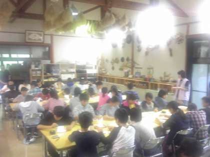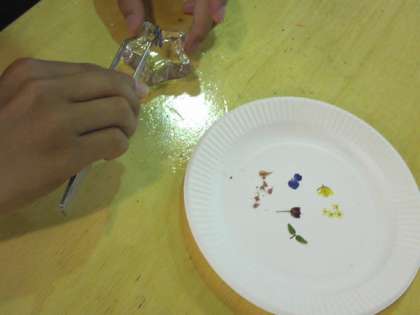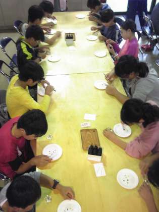 クラフト体験の様子です。ペーパーウェイトを作製しています。細かな作業に集中しています。出来上がりが楽しみです。作品は二学期の学芸発表会で展示します。
