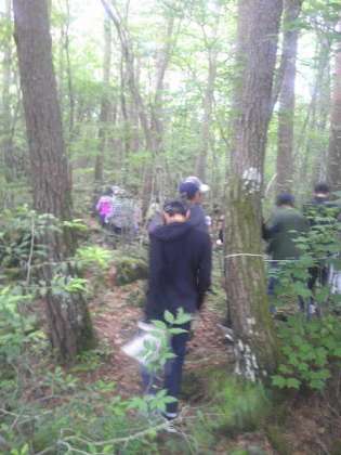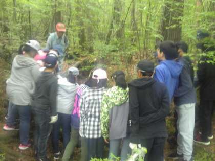 ガイドウォークの様子です。ネイチャ−ガイドに案内をしていただきました。森を散策し、複数の熔岩樹型の中に入りました。