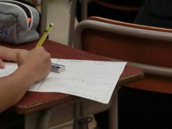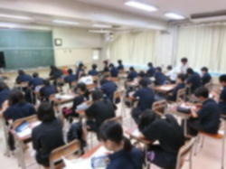 1年パワーアップ教室の様子です。数学(写真 左、中)、英語(写真 右)のそれぞれの教科で、課題に向けて自主的に取り組む生徒たちです。