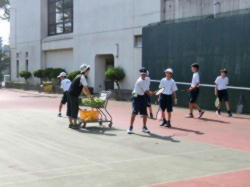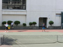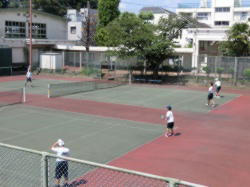 男子テニス部の練習の様子です。互いに声を掛け合いながら、協力して一つ一つの練習に励んでいます。
