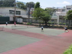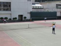 女子テニス部の練習の様子です。ペアで協力してサーブの練習に取り組みます。