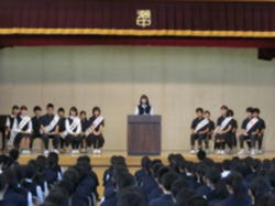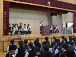 本日、生徒会役員選挙が行われました。立会演説会の様子です。会は選挙管理委員会により運営され、立候補者、応援演説者ともに、自己の考えやの思いをしっかりと伝えることができた演説の内容でした。併せて、演説をしっかりと受け止める生徒たちの姿から、よりよい瀬田中学校を自分たちの手でつくろうとする気持ちを強く感じることができました。