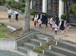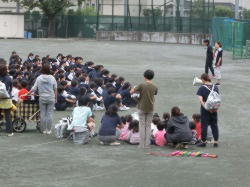 今回の訓練は、通常の避難訓練の目的に併せて、さくら青空保育園と合同で行うことにより、地域の防災意識を高める機会としました。中学生が園児の皆さんの避難を手伝ったり、園長先生からお話を伺いました。いざというとき、地域の中学生は頼りになる存在になります。
