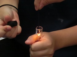 電気分解で発生した気体が溜まった試験管に、燃えている線香を入れるとどうなるか?