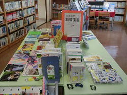昼休み、図書室では図書委員会が中心になって貸し出しなどを行っています。室内はおすすめの本のコーナーや新着本のコーナーなどの工夫がなされています。学習したり、本を読んだり、司書に相談したりして多くの生徒が図書室を利用しています。