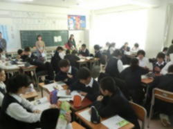 1年生は「感謝」、2年生は「友情・信頼」、3年生は「向上心、個性の伸長」について、各学年、個人やグループでの学習に取り組み、考えたり、議論したりしながら授業は進みました。