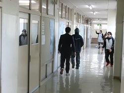 不審者が校内に侵入したことを想定した避難訓練を、12日に実施しました。発見から、不審者への対応、校内への周知、避難行動と各教室での対策等、一連の行動を通して、不審者が校内に入ってきたときの安全を第一に考えた対応について学びました。