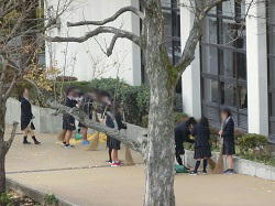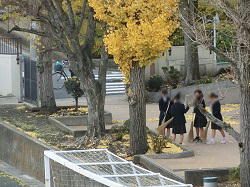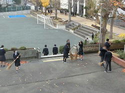7日から始まった落ち葉掃きに臨む2年生の有志です。冷え込みが厳しい日が続きますが、楽しそうに会話をしながら落ち葉を掃く生徒たちのおかげで、今朝も通路がきれいになります。