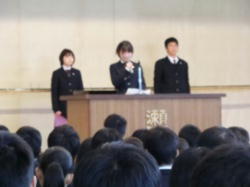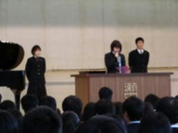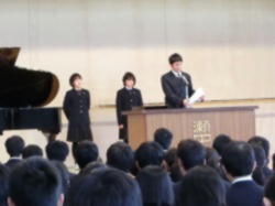 各学年の代表生徒から2学期の振り返りと次学期に向けての抱負が発表されました。来学期は、次年度に向けての「0学期」。さらなる成長を期待します。