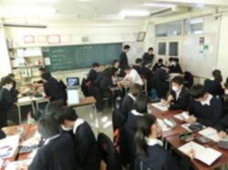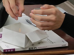 統計領域の学習で、野生動物が何頭いるかなどの方法を考え、標本調査の必要性と意味を確認するために、標本から母集団の全体の数を推定する「区間推定」を実験を通して学びました。池の中にいる鯉を小玉にたとえ、「ビンの中にある小玉の数を推定する」課題に班で協力して取り組みました。