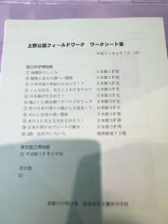 A組、C組は午前中、班に分かれて国立科学博物館を見学しています。どの班も課題のワークシートを一生懸命取り組んでいます。