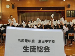11日に生徒総会が行われました。方針の発表、質問についての回答が生徒会本部役員会をはじめ、委員会ごとに行われました。すべての方針が承認され、令和元年度の生徒会活動が本格化します。生徒会の発展のために、一人ひとりが生徒会会員としての自覚を強くもって自主的に活動することを期待します。