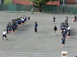 校庭で行われている朝練習の様子です。本日は2,3年生の割り当ててす。