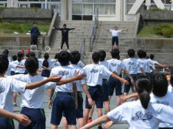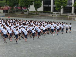 練習についての説明後、3年代表生徒の模範演技のもと、全校生徒が一堂に揃ってラジオ体操を行いました。模範演技の生徒をはじめ、4月に行ったラジオ体操講座の成果が見えた内容でした。退場練習後の入場練習では、3年代表のしっかりした号令のもと、全体がまとまりのあるものとなりました。頼りになる3年生たちです。