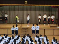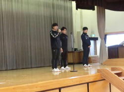 21日、雨天のため、教育実習生の紹介と運動会全体練習を体育館で実施しました。全体練習は、生徒の司会進行のもと、開会式、閉会式の流れを本番と同様に行いました。また、20日から6月8日までの予定で3名の実習生を受け入れ、教育実習が行われます。実習生から挨拶をいただき、拍手とともに温かく迎えました。