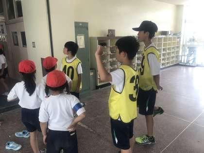 黄色のビブスを着用し、母校の運動会の縁の下の力持ちとして一所懸命活動していました。小学校の先生方もPTAや地域の方々も中学生の活躍に「頼りになる!」と感心されていました。