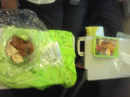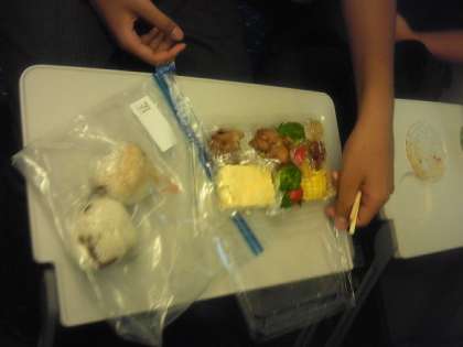 昼食の時間になりました。美味しそうな匂いが車輌内に広がります。