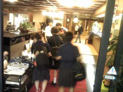 猿沢池の辺りを通って宿舎に向かいます。到着の確認をして部屋に入ります。班行動が終わり、生徒たちが次々と戻ります。