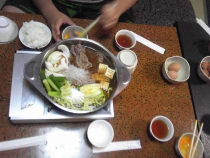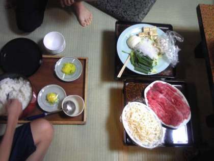 今日の夕食は部屋毎にすき焼きです。しっかり食べて1日の疲れをとばします。