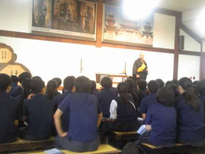 薬師寺に到着しました。お坊さんの法話を聞きました。薬師寺についてユーモアのある分かりやすい話に、皆、引き込まれていきます。