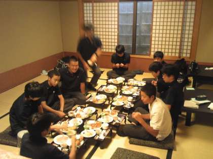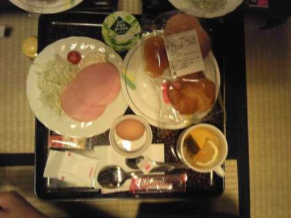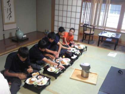 朝食の様子です。宿舎でいただく食事も最後になりました。いただきます。