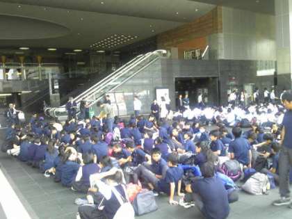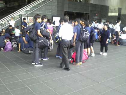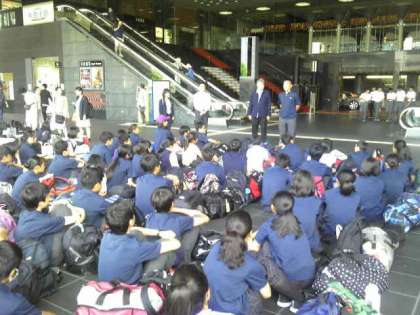 予定のタクシー班行動を終えて全班が京都駅に到着しました。解散式を終えてホ−ムへの移動を待ちます。
