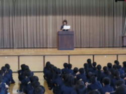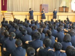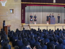 今日は、開校記念日です。生徒会朝礼では、会長の話、先週行われた委員会での連絡事項が関係の委員会から全校生徒に伝えられました。また、生活委員会から、衣替えに伴う服装の着こなしについて、ポイントに沿った話がされました。