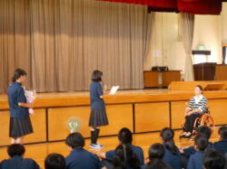 予定の時間を超えて、生徒の質問に丁寧に答えていただくとともに、一人ひとりに金メダルに触れさせていただきました。「自分の可能性を求めて」というテーマでお話しいただいた内容を参考にして諸活動に臨み、自分の夢や目標を実現するために生かしてくれることと思います。話を聴く姿や代表生徒のお礼の言葉など、講演会に臨む生徒たちの姿に、成田さんをはじめ、講演の実現に向けてご協力いただいた方々からお褒めの言葉をいただきました。多くの方々のご協力いただき、貴重な時間を過ごすことができましたことに感謝申し上げます。