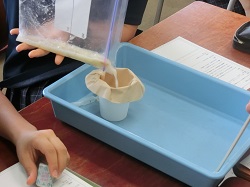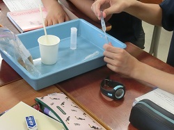 9日(火)5校時、世田谷区指導力向上サポート室から講師を迎えて、若手教員の研究授業を3年生の理科で行いました。「遺伝の規則性と遺伝子」について、今日の授業ではDNAの存在を実際に目で見て確かめることを目標に、バナナからDNAを取り出す実験に取り組みました。、
