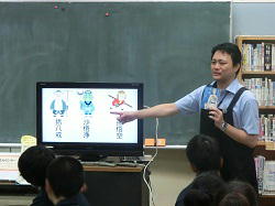 学期末まで、ブックトークを各クラス1回、朝読書の時間に実施します。図書館司書お勧めの本を紹介していただくことを通して、図書室の利用や活用を進める機会とする取組です。図書室には、新着本や図書委員会お勧めの本など、様々な本が分かりやすく展示されています。
