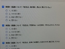 本校では、学期末に授業に関するアンケートを実施しています。この取組は、生徒が自身の授業への取組を振り返るとともに、授業担当者が結果をもとに、授業の工夫や改善に活用します。7月17日までの日程で、朝の時間を使用して、一日一クラスがパソコン室でタブレットを活用したアンケート調査に取り組みます。