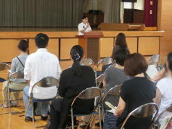 第2土曜日の授業日にあわせて、保護者会等を実施ました。保護者会の前に、1年生は9月実施の移動教室に向けた保護者説明会を行い、担当から、行程や持ち物、健康管理などについて説明をしました。保護者会全体会では、校長あいさつに続き、教務担当から、通知表、夏休みの教育相談・パワーアップ教室・自学自習教室など、学習に関わる内容についての説明を行いました。最後に、生活指導担当から、服装を考える日や情報機器の扱いなどを例に、様々な機会を通して、自ら考えて行動する力を育むことの大切さとご家庭の協力についてお願いいたしました。1学期、保護者の皆さまには、本校の教育活動にご理解とご協力をいただき感謝申し上げます。