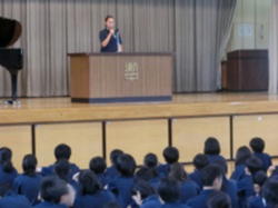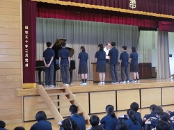 式の最後に全校で校歌を歌いました。式の終了後、美化コンクールの表彰が行われ、金賞のクラスが賞状を授与されました。学芸発表会実行委員長からスローガン「ベストを尽くせ新時代〜個性と芸術色(いろ)で染めあげよう〜」が発表され、最後に生活指導の担当から夏休み中の留意点が伝えられました。夏休みは、安全に、有意義に過ごし、充実したものとなるよう一人ひとりの取組に期待します。